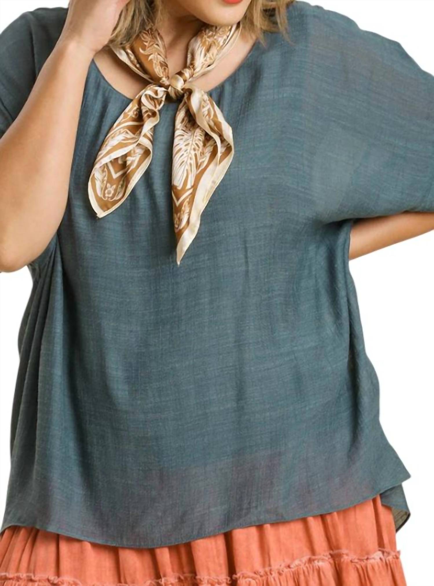 A versatile blouse that works from desk to dinner! Introducing the Dolman Sleeve Sheer Layered Top by Umgee, a stylish addition to your wardrobe in a captivating Seaweed hue. This blouse features short dolman sleeves and a classic crewneck, crafted from a blend of 65% rayon and 35% polyester for a comfortable fit. Designed with a convenient pull-on closure, it has a solid pattern ideal for a Boho Chic summer style. Care instructions recommend machine washing and laying flat to dry, making it perfect for vacation wear.
