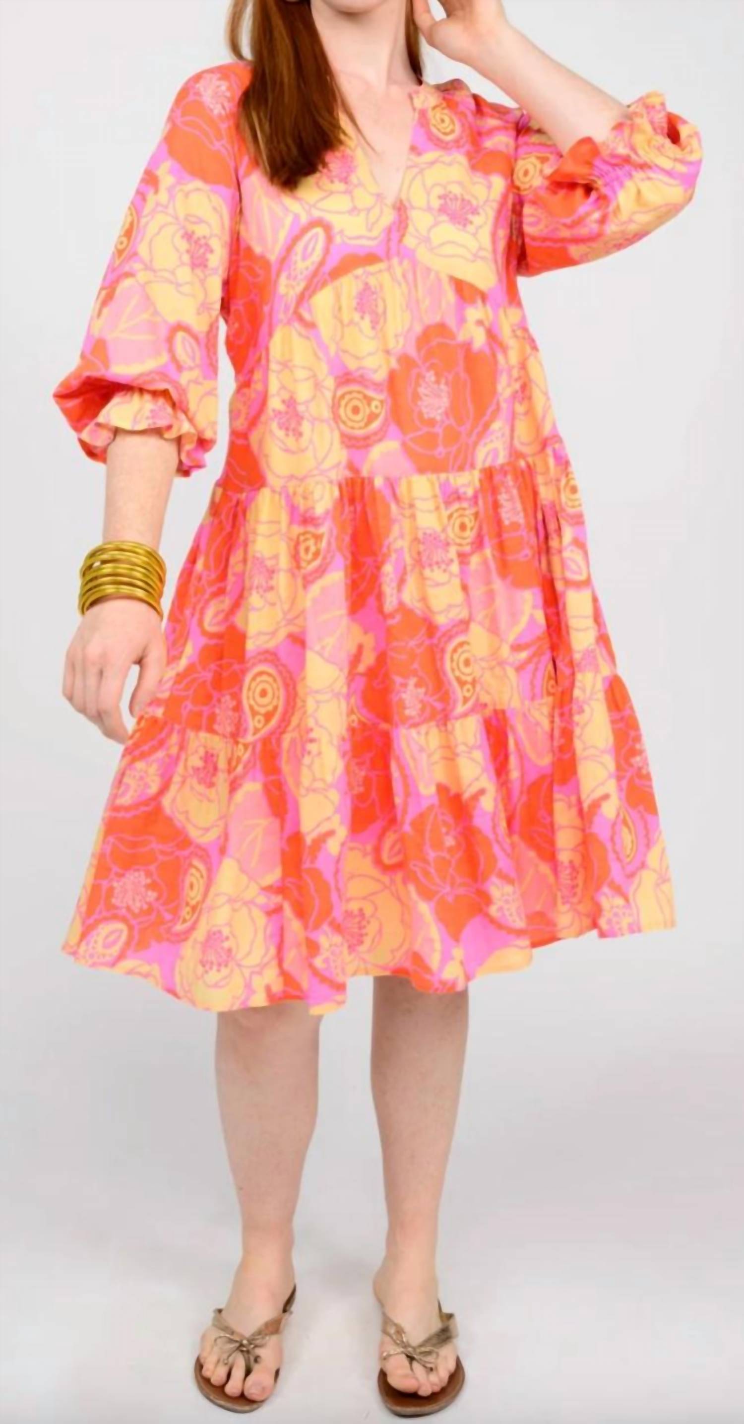 A midi dress so versatile, your options for wearing it are endless. Embrace the vibrant spirit of spring with the Uncle Frank Floral Midi Dress in a stunning coral hue. This women’s dress features a V-neckline and a beautiful floral pattern with three-quarter sleeves, creating a boho chic look that is perfect for vacation or an Easter celebration. The shift silhouette and midi length offer a comfortable, stylish fit, while the pull-on closure enhances its effortless appeal.