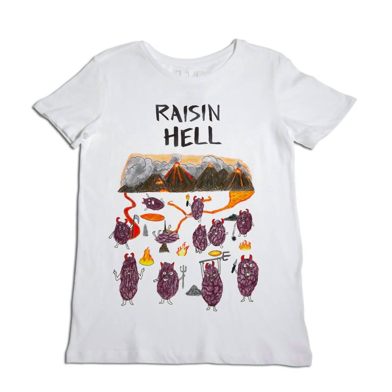 Look no further, you just found your perfect tee! Introducing the Raisin Hell T-shirt by UNFORTUNATE PORTRAIT, a women's graphic tee designed with a unique streetwear vibe. This short sleeve T-shirt offers an oversized, boyfriend-style fit and is composed of 100% cotton that is pigment dyed for a vintage look. The crewneck top, with hand grinded edges and rolled sleeves, provides a soft, high-quality feel. Closure: Pull on. Printed with care in Los Angeles.