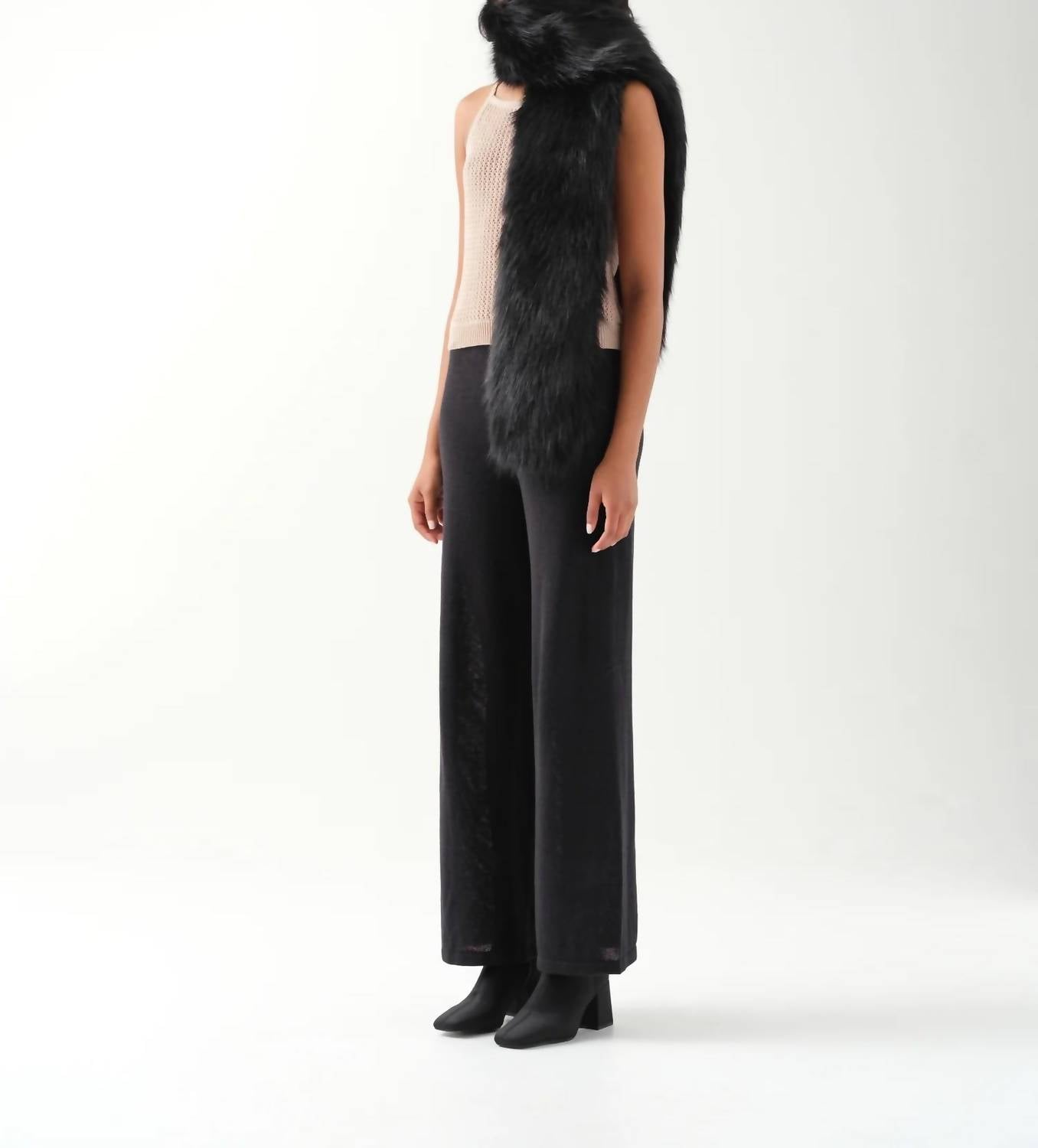 Both classic and versatile with the endless ways you can wear it. The West End Scarf by Unreal Fur is a sophisticated accessory crafted from ultra-soft faux fur in elegant black. This 160 cm long scarf features a fully lined design that adds both subtle volume and luxurious texture, perfect for draping naturally over the neckline. It is composed of 100% modacrylic, ensuring a smooth finish that's a minimal statement from day to night. Care for this beautiful piece by opting for professional dry cleaning only, and avoid ironing.