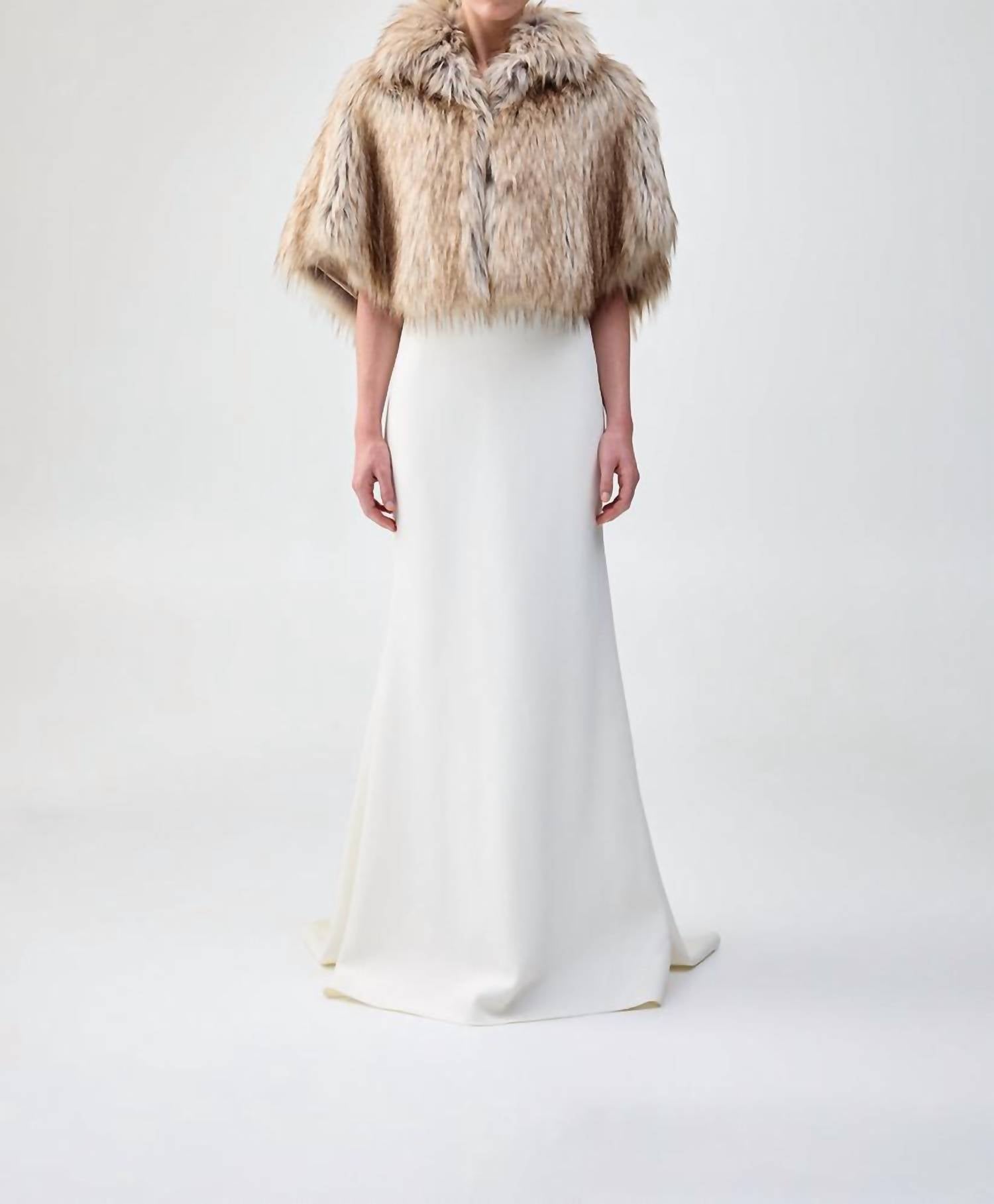 A jacket so versatile you can literally wear it with anything. Embrace elegance with the Women's Nord Cape by Unreal Fur, crafted in premium faux fur and designed in a natural color. This chic cape features a sophisticated short sleeve style and a distinguished wide collar, secured with a concealed hook and eye closure. Perfectly suited for black-tie events or adding a touch of quiet luxury to your regular wear, this one-size-fits-all garment is lined with satin for added comfort. Made from 100% faux fur, it requires professional dry cleaning and should not be ironed, ensuring it stays in pristine condition.