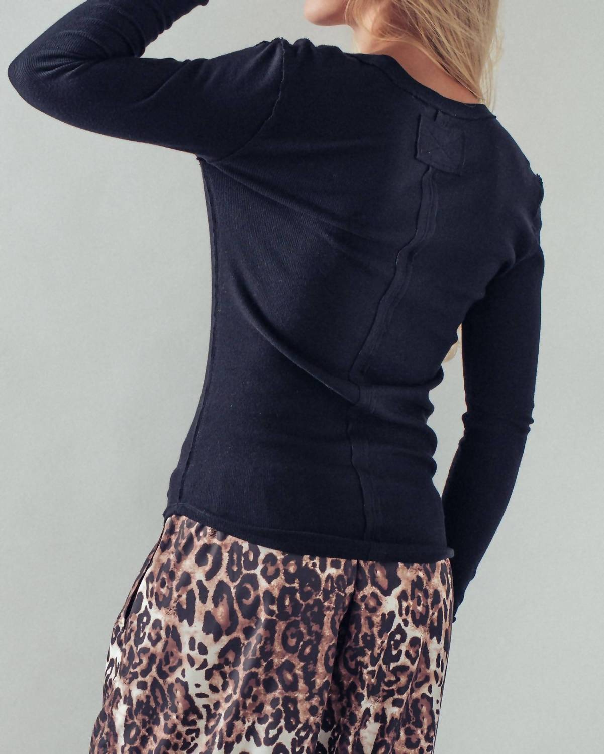 Urban Daizy - Ribbed Henley Long Sleeve Top