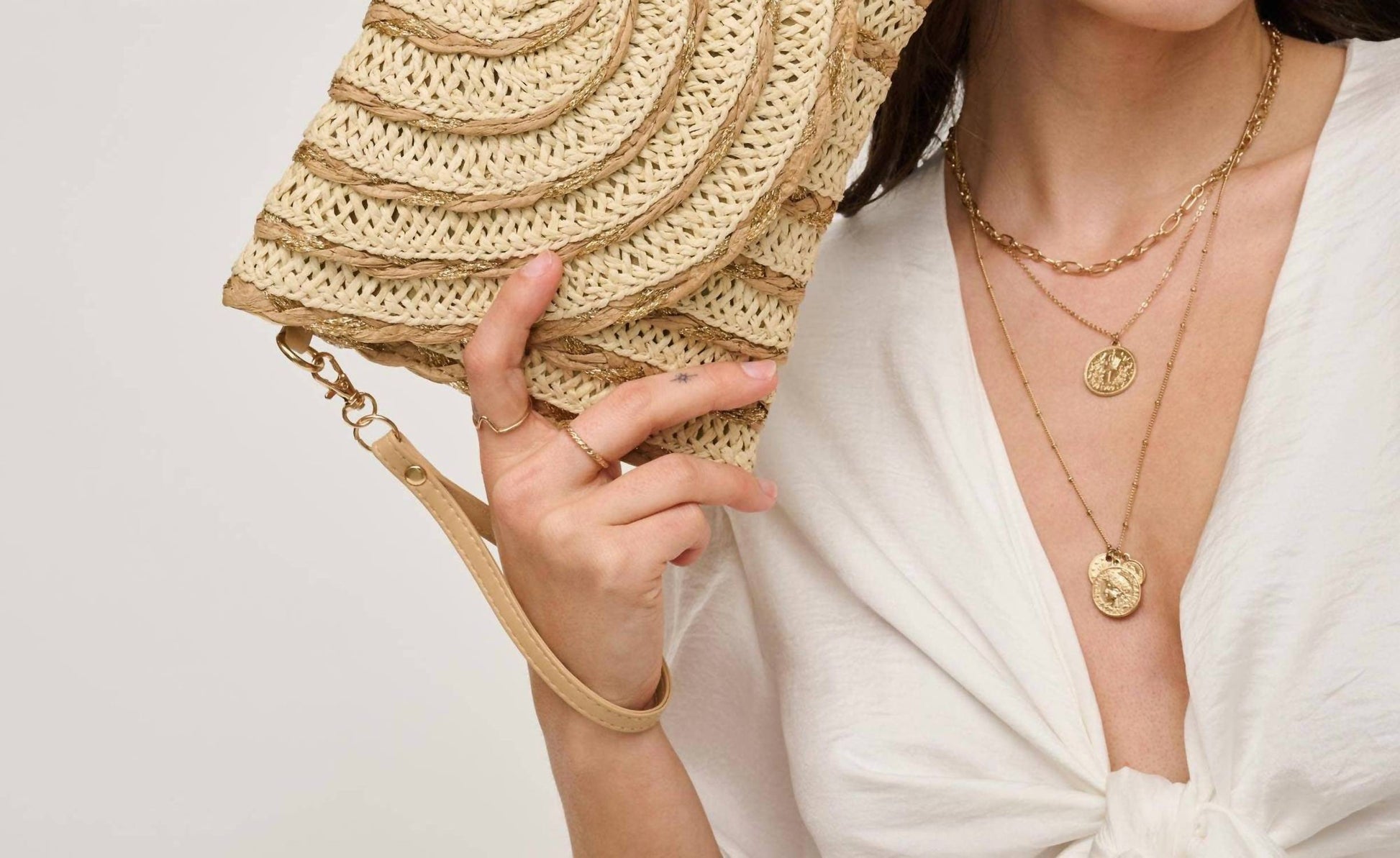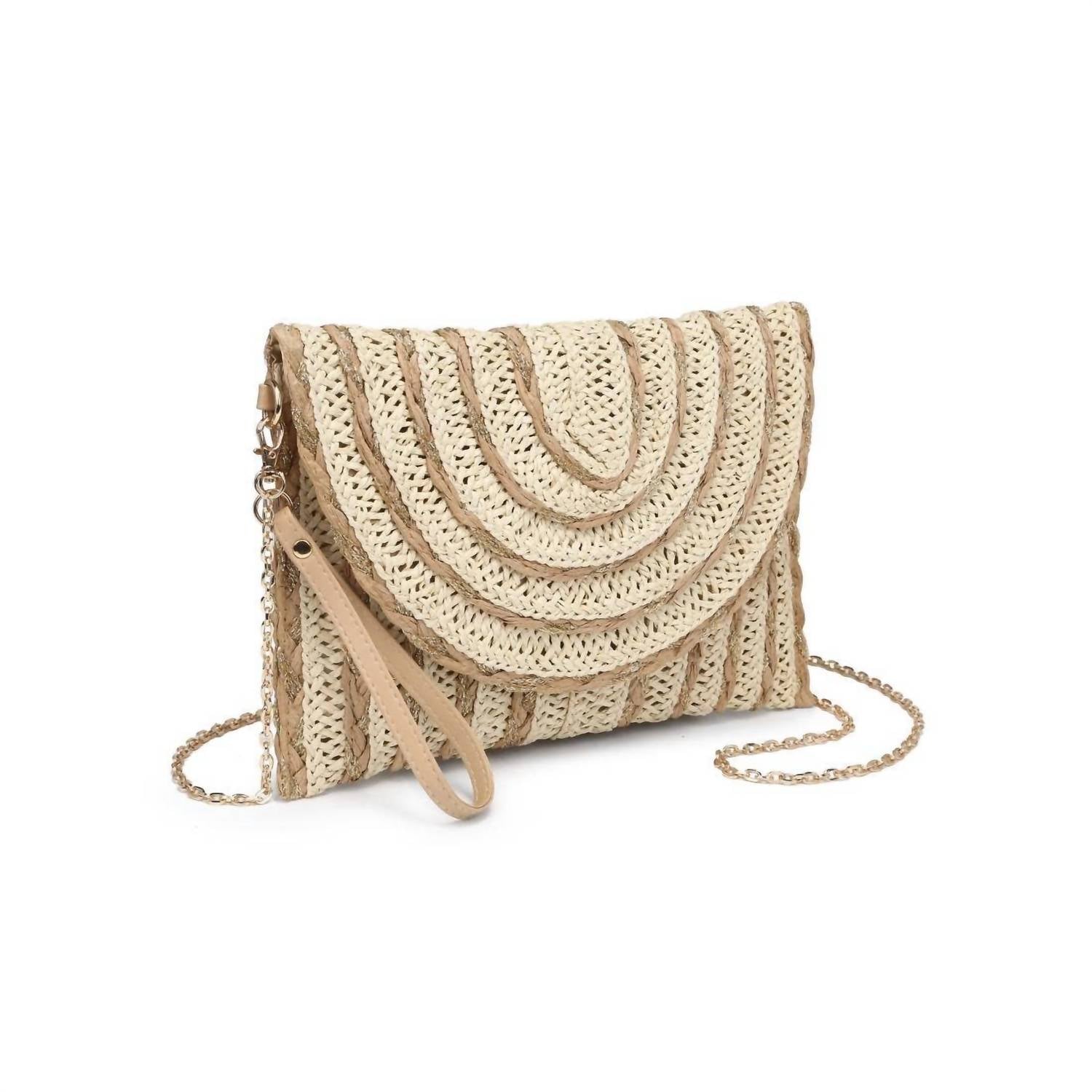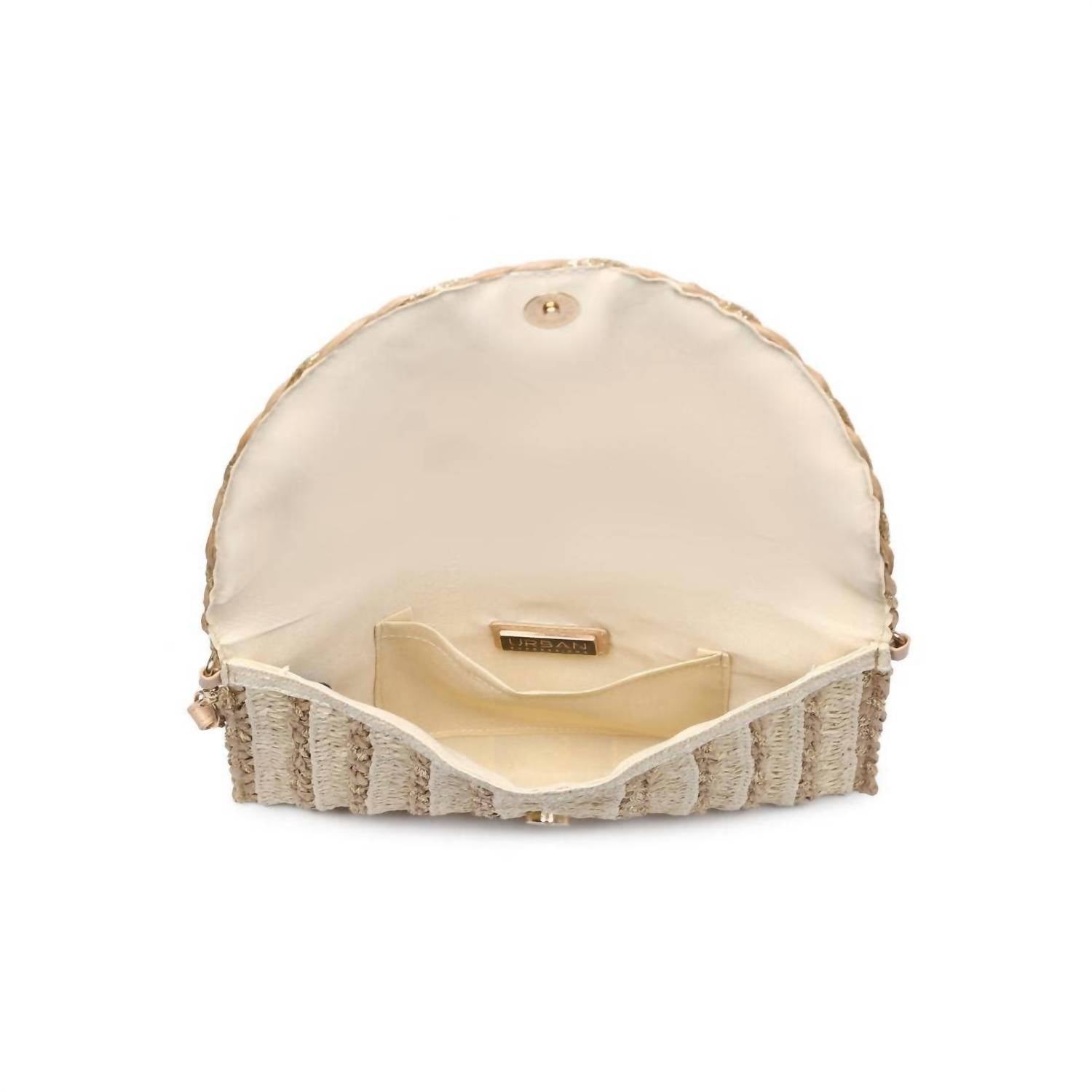 Lipstick, check. Mints, check. Credit card, check. The cutest little bag that holds all of your necessities. Elevate any occasion with the Golden Hour Ruffle Clutch by Urban Expressions, a beautifully woven piece in soft ivory and natural hues with a touch of gold shimmer. The playful ruffle silhouette and polished gold-tone hardware add elegance, while the magnetic snap closure ensures easy access. Measuring 11” L x 1.2” W x 7.9” H, it offers versatile carrying options with a detachable chain strap and wristlet. Inside, the fully fabric-lined interior with a slip pocket keeps your essentials neatly organized. Material: Polyester.