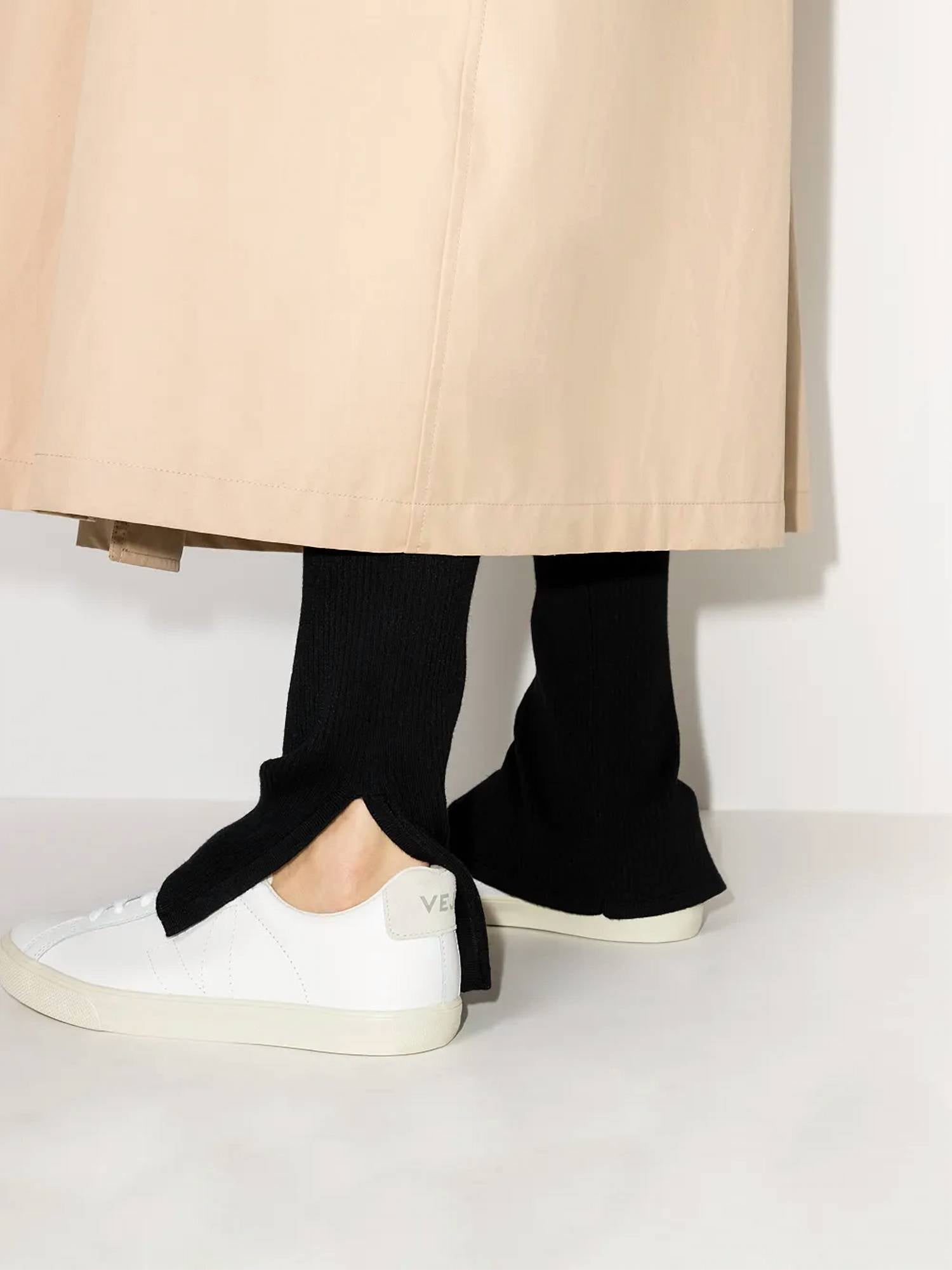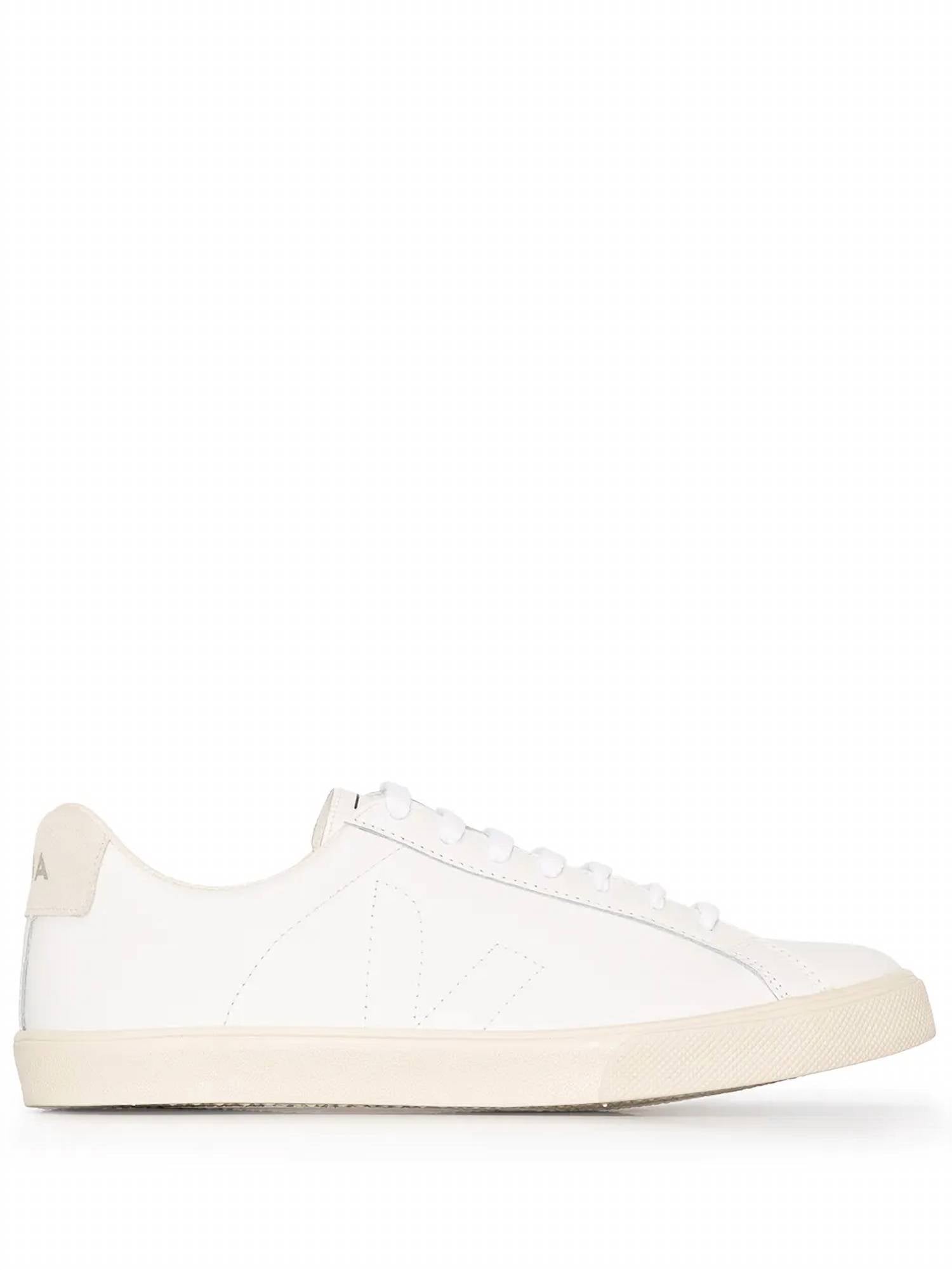 The Women's Esplar Low-top Leather Sneakers by VEJA are a minimalist's dream, perfect for spring travel. Made from 100% leather, these sneakers feature a round toe and flat heel design in a chic extra white color. With a heel height under 1", they are ideal for all-day wear and complementing your Christmas holiday wardrobe. These flat-heeled sneakers cater to medium shoe width for a comfortable fit.