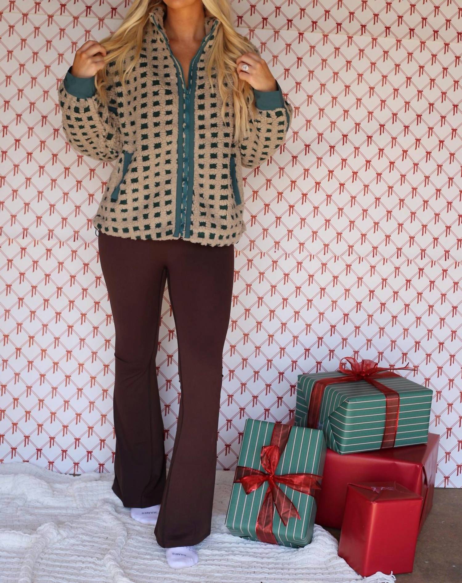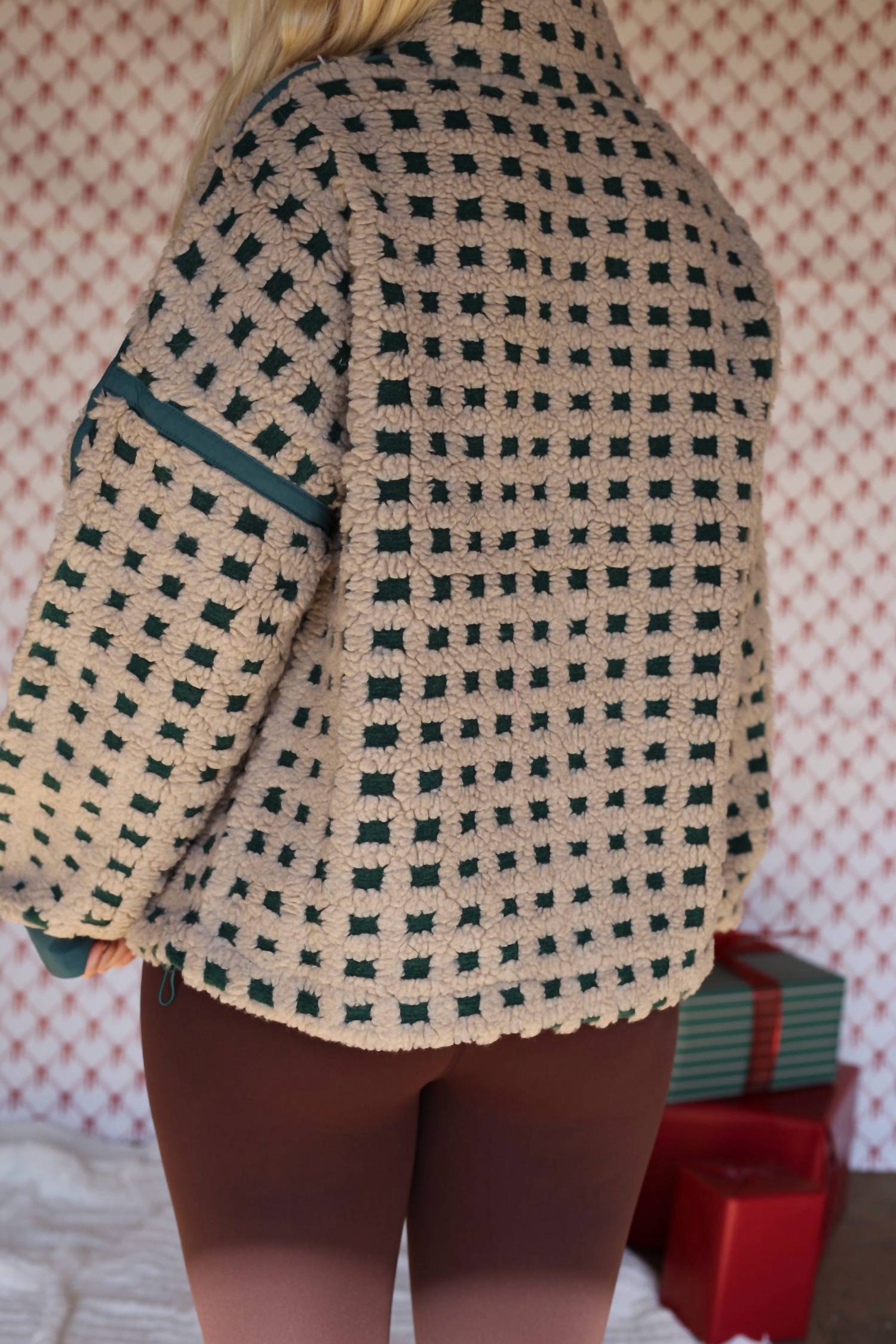 A casual yet cool jacket that every closset needs. Enhance your wardrobe with the Women's Fuzzy Checkered Jacket by VERY J, featuring a stylish plaid and check pattern in a forest and gray palette. This long-sleeve jacket offers a cozy touch with its soft texture and oversized fit, making it perfect for winter layering. It includes practical side pockets and a zip closure, presenting a functional yet chic design. Perfect for any occasion, especially holiday gatherings, this jacket is a versatile addition to your collection.