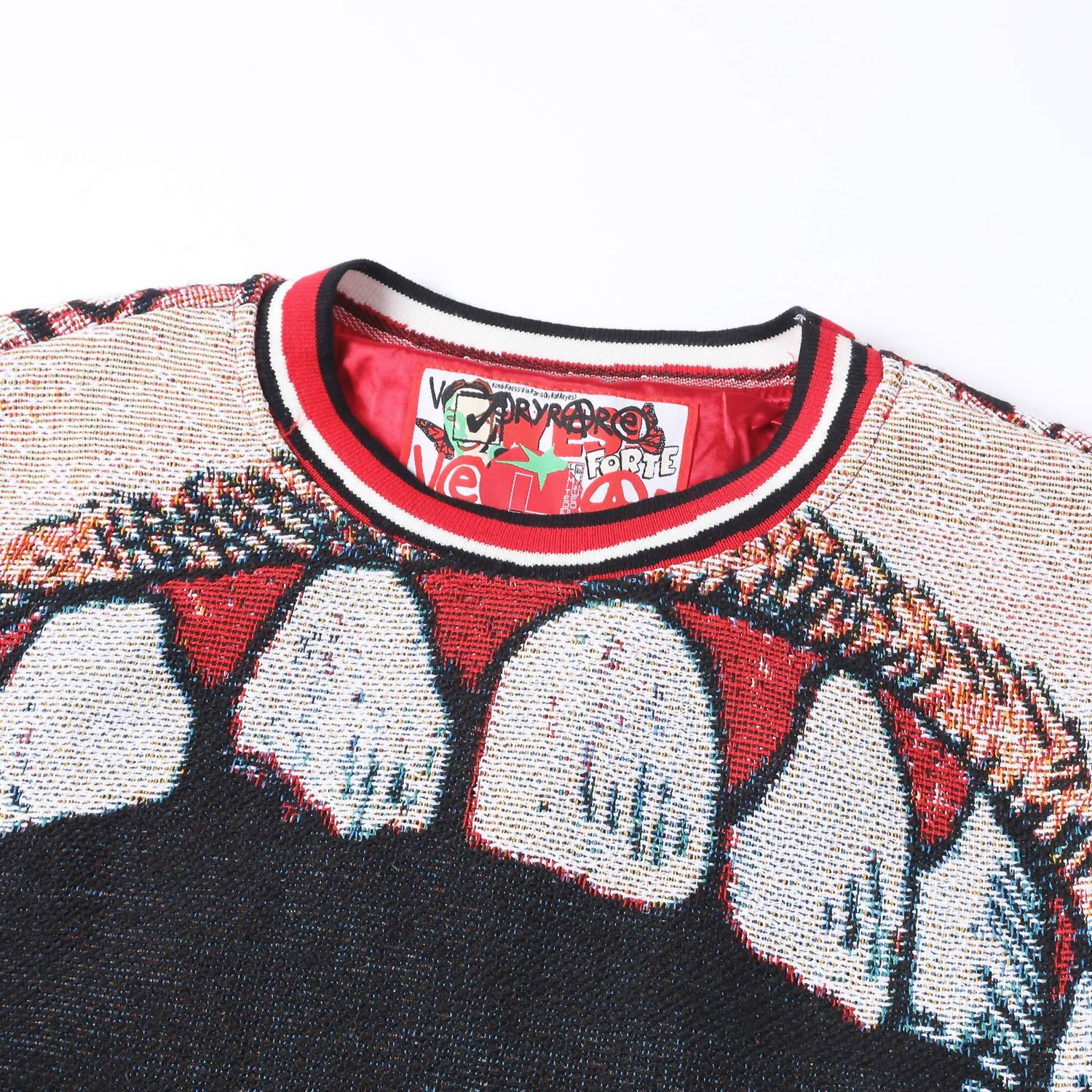 Embrace edgy streetwear with the Take Your Pills Crewneck Pullover Sweatshirt by Very Rare, featuring long sleeves and a striking graphic design. Crafted from premium jacquard woven tapestry fabric with a cotton blend, it ensures comfort and style. The pull-on closure and ribbed cuffs contribute to a relaxed, oversized fit, ideal for casual travel or lounging. Care for this piece effortlessly with machine wash and tumble dry instructions.