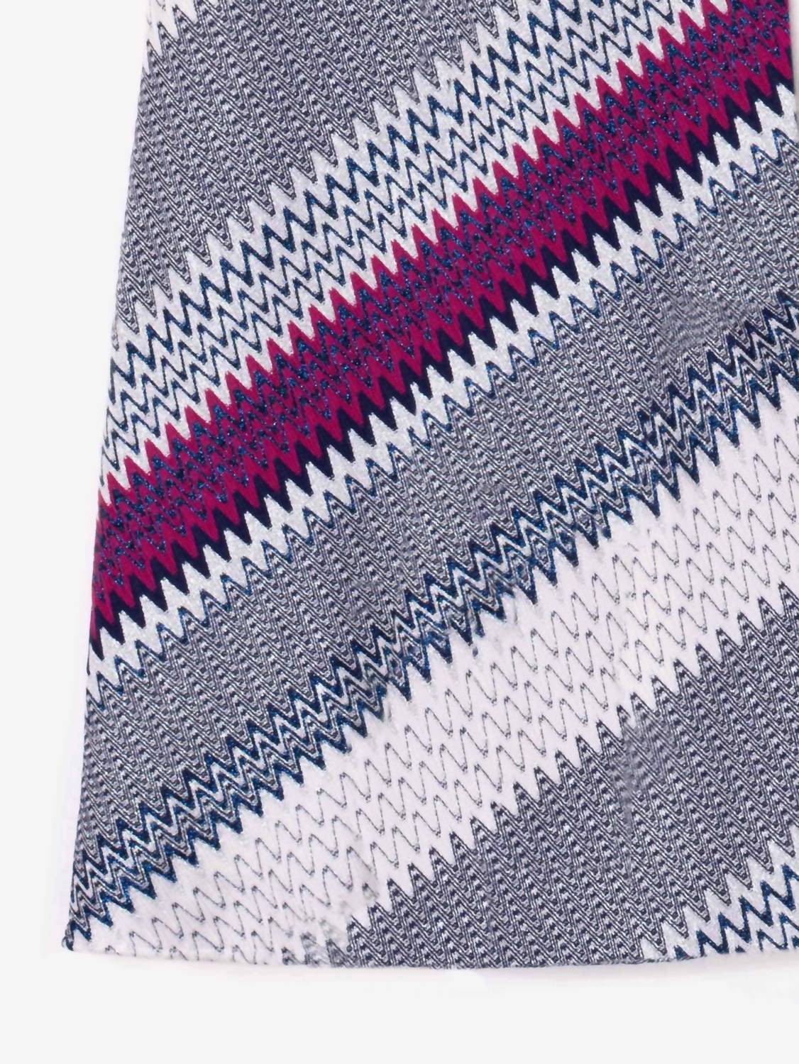 Who doesn't love a good maxi skirt? Introducing the Women's Sirena Skirt by Vilagallo, a vibrant addition to your spring wardrobe in Marino Plata Jacquard. This ankle-length maxi skirt features a captivating zigzag pattern in shades of blue, white, grey, and fuchsia. Crafted from slightly ribbed textured fabric, it boasts a clean waistband with a pull-on closure. Perfect for a vacation or a nod to '90s fashion trends.