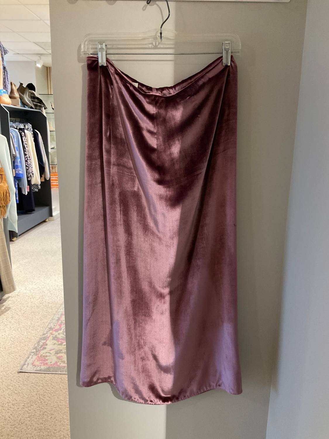 The midi length skirt is here to stay and we especially love this style. Embrace the essence of quiet luxury with the Vince Velvet Midi Skirt, a stunning piece drenched in a dusty mauve hue reminiscent of the ocean's coral. Crafted from lustrous panne velvet woven with hints of silk, this women's skirt captures a soft, luxurious texture. Ideal for a dinner party or Thanksgiving occasion, its solid pattern and mid-length silhouette offer a sophisticated statement. Perfect for adding a touch of refinement to your Fall wardrobe.