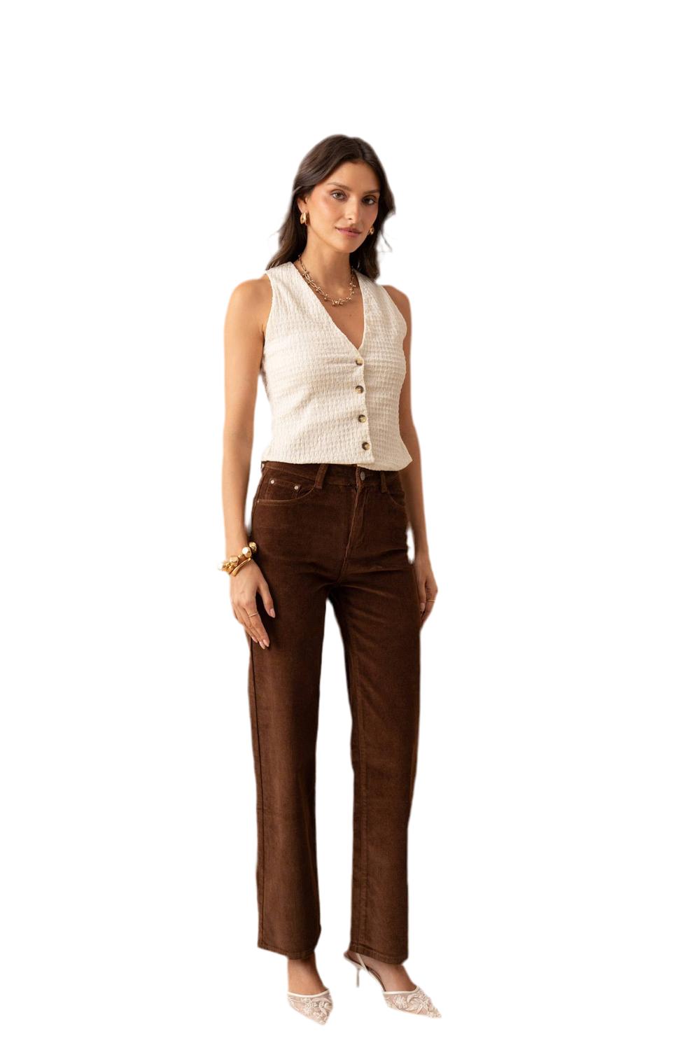 Discover the Corduroy Wide Leg Crop Jeans by Vivid, offering a perfect blend of vintage charm and modern appeal. With a high-rise, wide-leg relaxed fit, these pants transition seamlessly from casual daywear to chic evening outfits. Lovingly crafted from 72% Cotton, 26% Polyester, and 2% Elastane, they promise a slight stretch for ultimate comfort. Closure: Zip closure. Care: Machine wash, tumble dry. Model is 5'8" and wearing a size small; runs fitted, suggested to size up. Available in a sophisticated Brown, these jeans are ideal for fall gatherings.