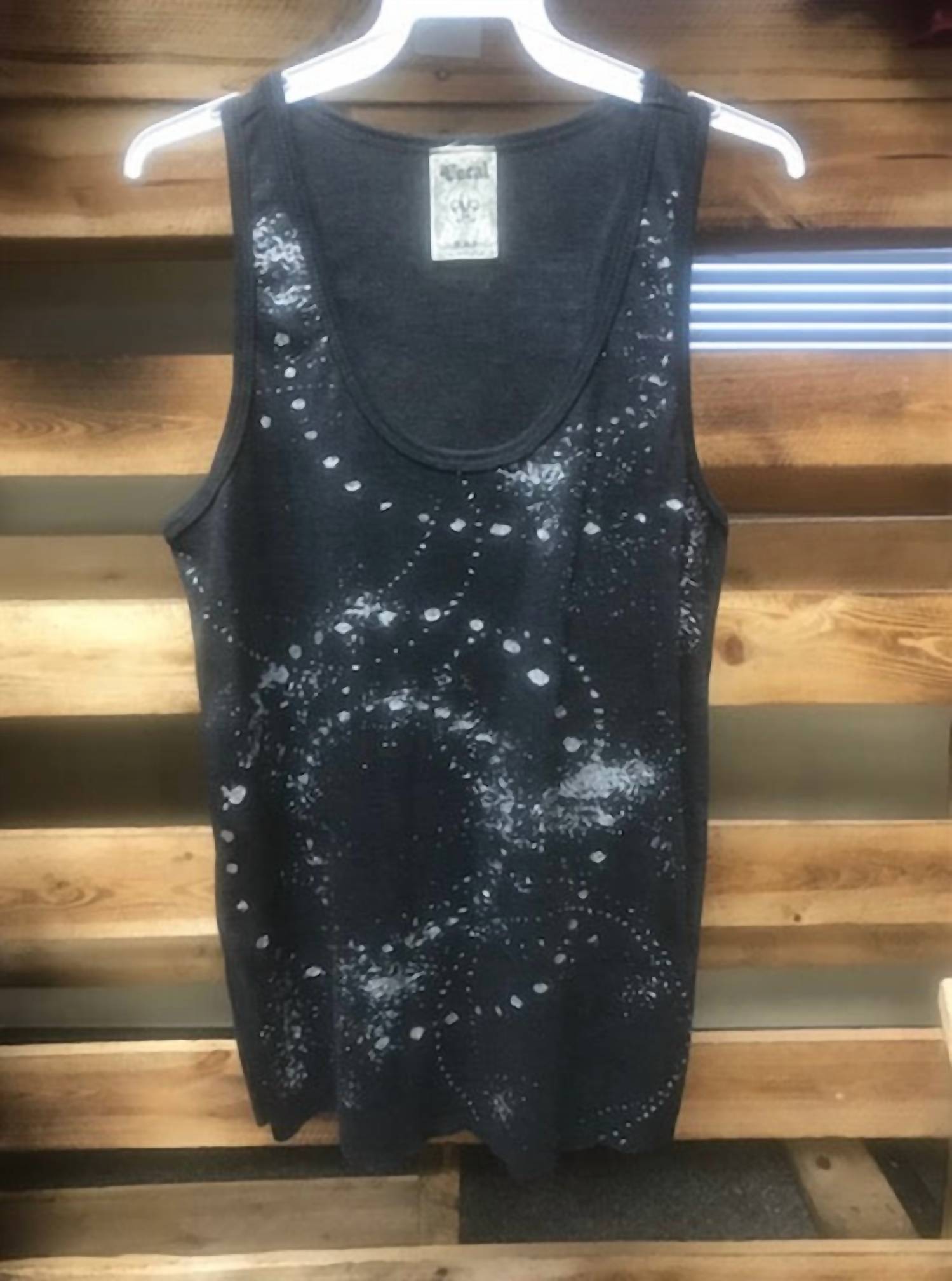 Fit, fabric and functionality. This tank top checks all the boxes. Elevate your workout wardrobe with the Women's Sparkle Fireworks Tank by VOCAL APPAREL, featuring a dazzling silver glitter graphic. This sleeveless tank boasts a comfortable scoop neckline and is crafted from 100% cotton, perfect for keeping cool during summer workouts. Designed for activewear, its pull-on style makes it an effortless choice for any fitness routine. Ideal for athleisure trends, this tank is made without pockets and does not have specific care instructions.