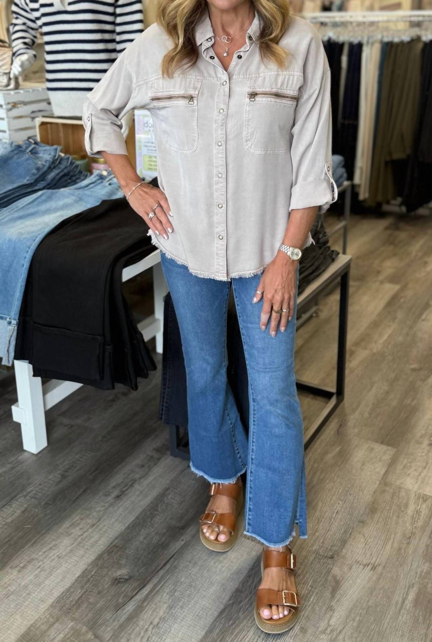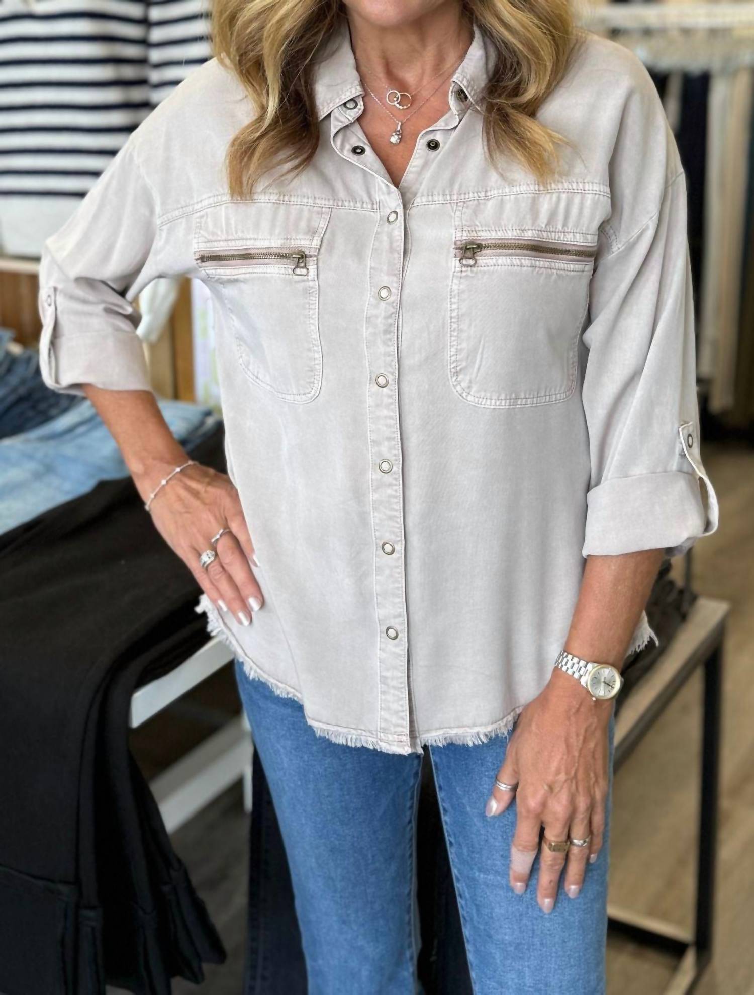 Wearables - Pigment Knapp Distressed Cargo Button Up Top