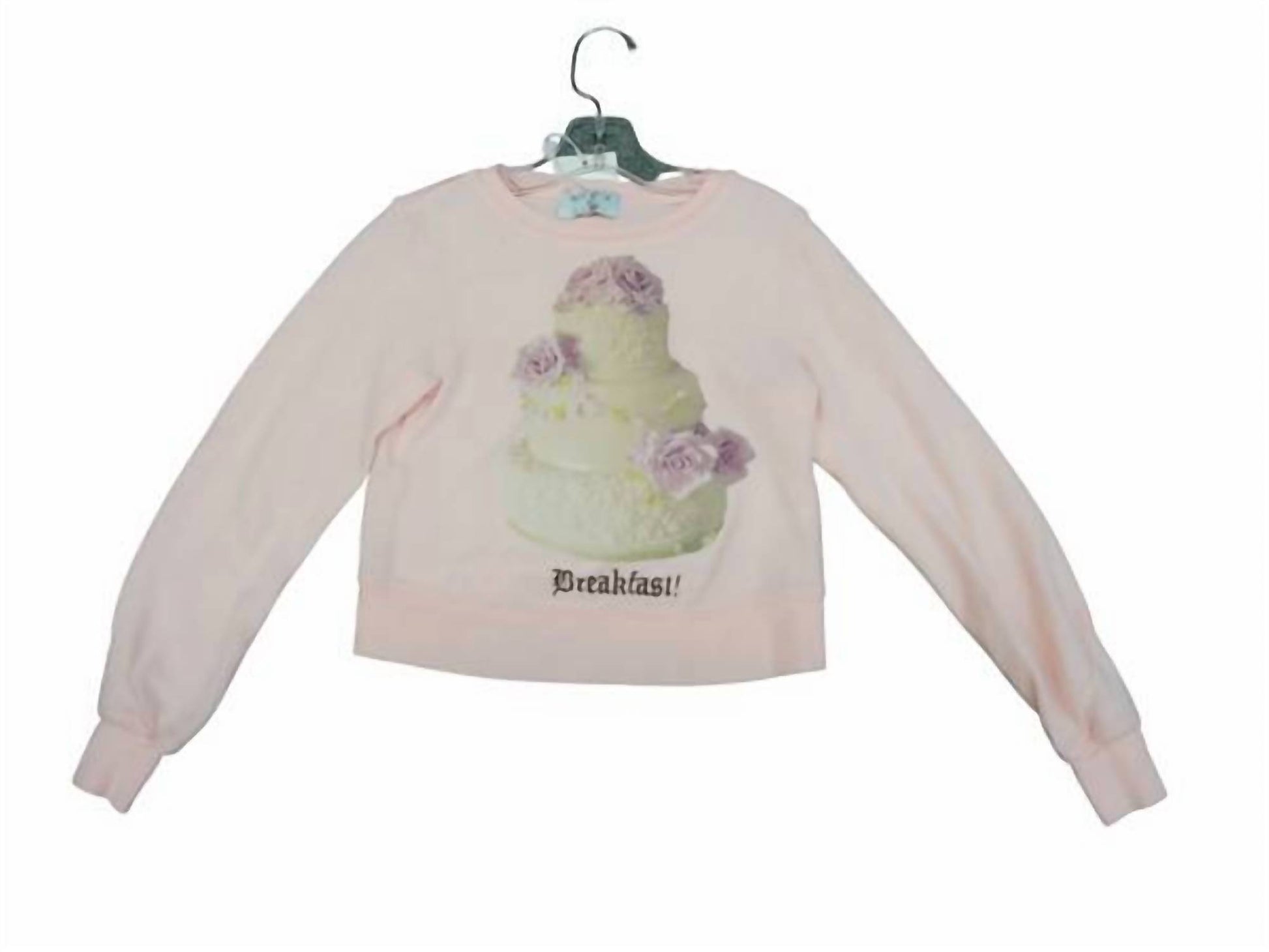 Elevate your young one's wardrobe with the WILDFOX Kids' Cake Breakfast Sweater, a charming option for casual outings or special occasions. This playful graphic sweater features a delightful cake print with "Breakfast!" text, adding a fun layer to any outfit. Designed for girls, this sweater is ideal for church gatherings or playful days out. Hand wash to keep this cheerful piece looking fresh.
