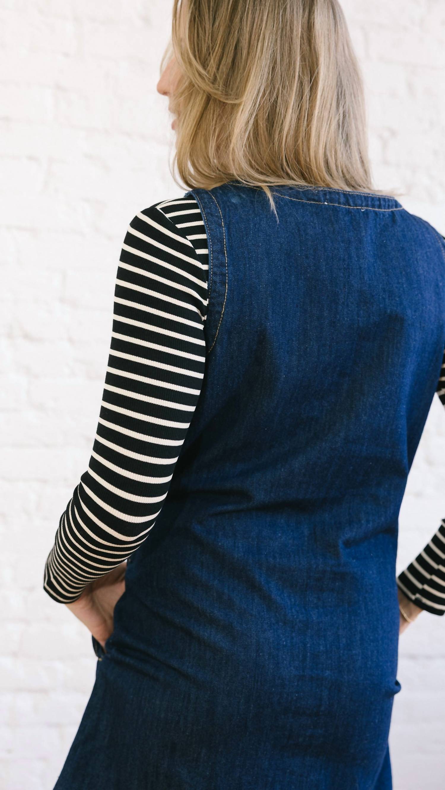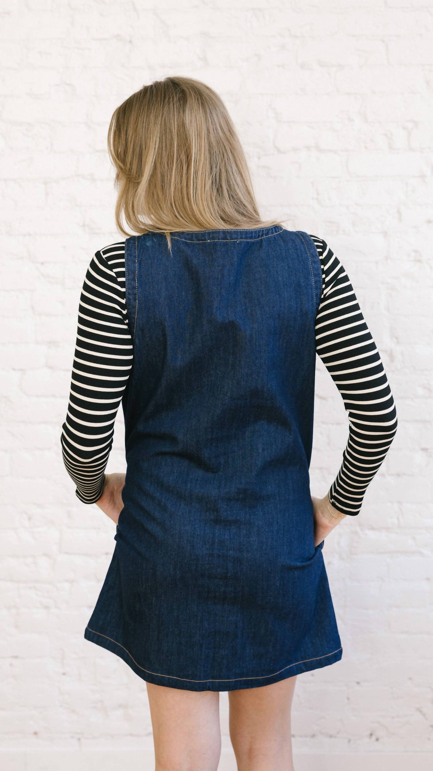 A short and breezy dress for those warmer days. Introducing the Denver Dress by WISHLIST, a chic denim mini that easily becomes your wardrobe staple. With its full-length sleeves and button closure, this piece combines functionality with fashion through its striking button detailing and practical side pockets. Crafted from 100% cotton, it's breathable and offers a relaxed fit that enhances comfort throughout the day. Care instructions are simple: machine wash and line dry to keep this dress looking fabulous.
