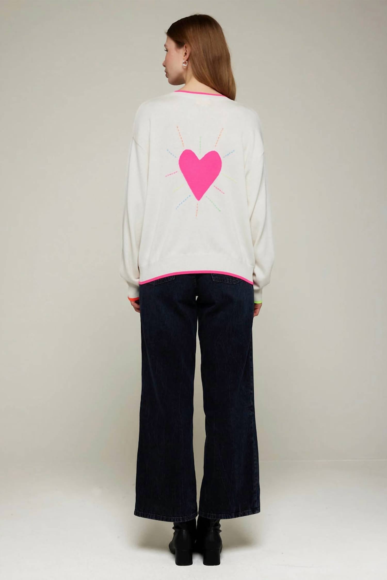 The ultimate go-to sweater, expertly crafted to provide the perfect combination of warmth and style. Its classic design and soft fabric make it a must-have addition to your wardrobe. Introducing the Valentina Heart Crew Sweater by Wispr, a perfect blend of style and comfort in an Ice Water/neon hue. This long-sleeve sweater is part of the WISPR cotton-silk range, featuring a unique heart back detail. Made from a cotton blend of 70% cotton, 20% nylon, and 10% silk, this piece is designed for a loose fit that rests at the low hip. With its pull-on closure, it originates from non-toxic dying methods and recommends machine wash and lay flat to dry care instructions.