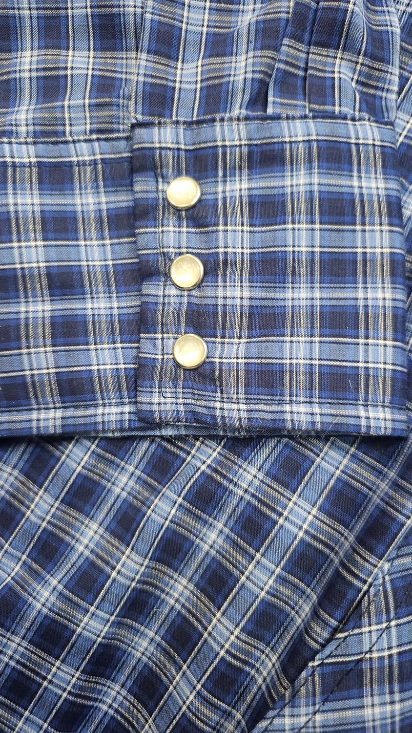 Elevate your casual wardrobe with the Men's Western Wear Classic Fit Shirt by Wrangler, a perfect nod to 90s fashion. This long sleeve shirt features a classic plaid and check pattern in shades of blue, white, and teal, complete with a handy pocket. Designed for Spring and ideal for vacation occasions, it ensures both style and comfort. Closure: Button closure. Available in plus sizes.