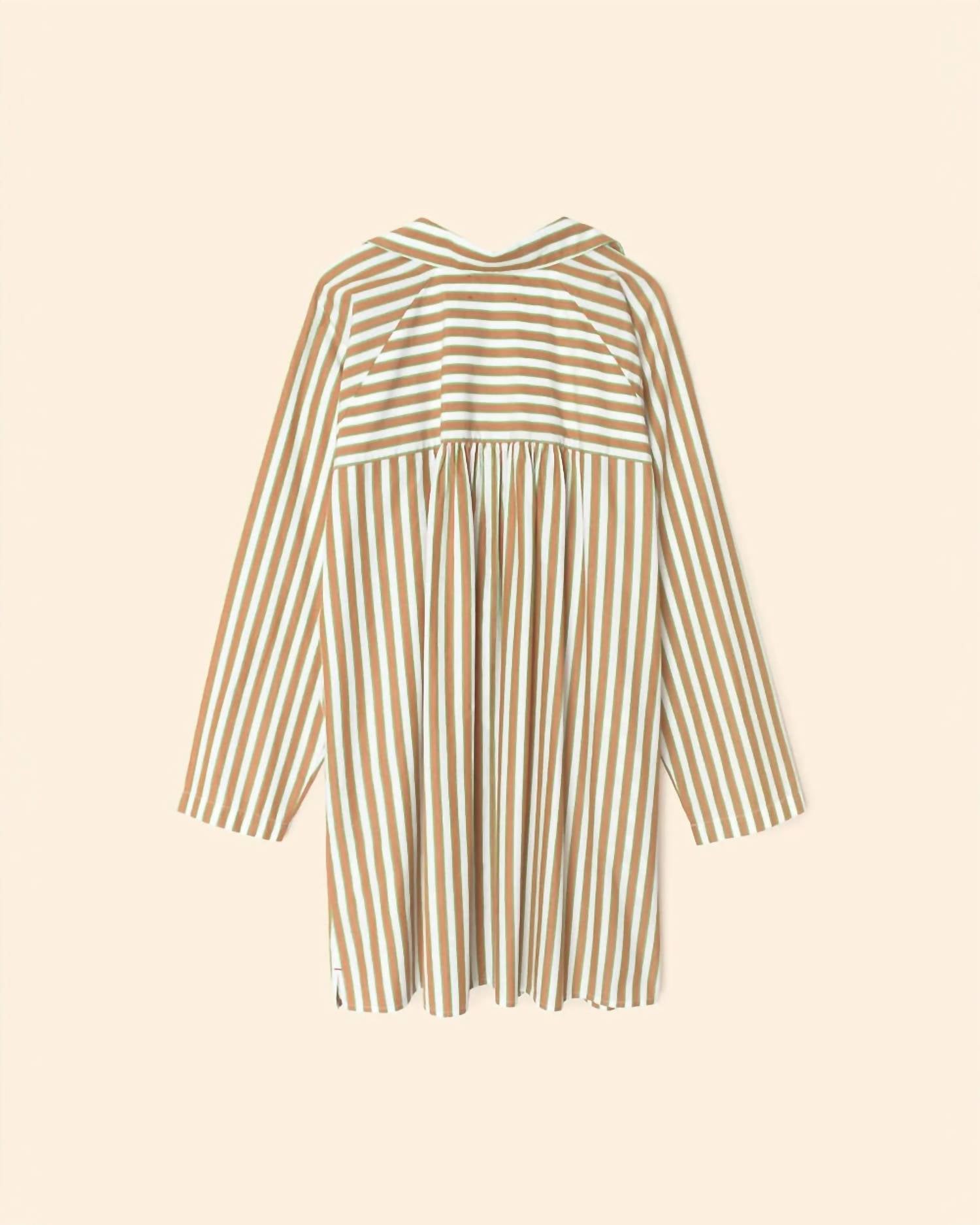 The pefect long sleeve dress for those cooler months. Step into effortless elegance with the Xírena Flora Shirt Dress in Tobac Green. This long sleeve shirtdress is crafted from 100% cotton paper poplin, giving it a crisp, breathable feel. Designed with a relaxed silhouette, it features a button-front closure, a left chest pocket, side seam pockets, and hem side slits for added style and convenience. Care instructions include machine wash and tumble dry, perfect for maintaining its minimalist, striped design.