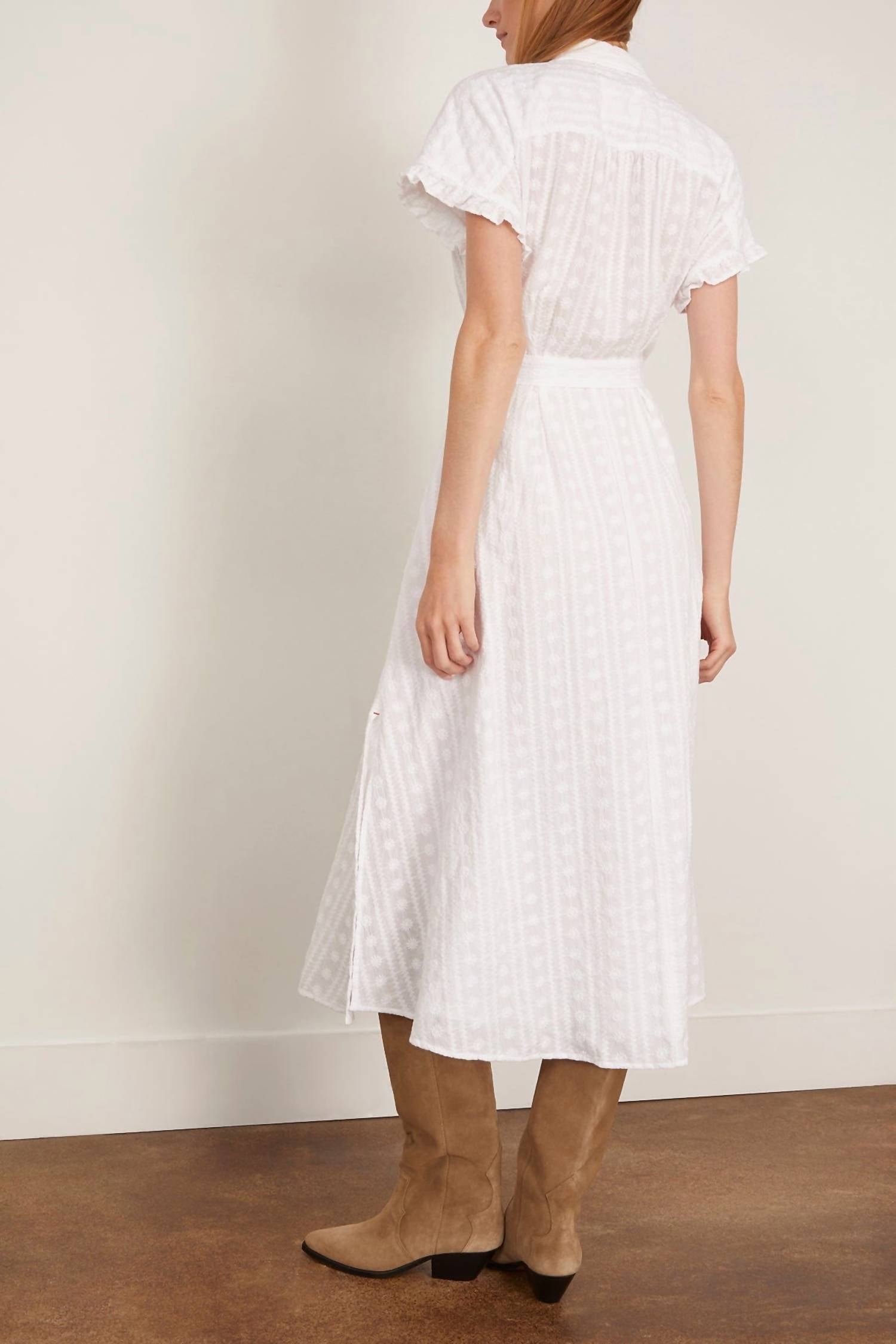 A midi dress so versatile, your options for wearing it are endless. Introducing the Naya Midi Dress by XIRENA, an elegant wardrobe addition featuring intricate floral embroidery on a pure white canvas. This A-line shirtdress offers a relaxed fit and short sleeves, complemented by a self-tie belt for added shape and style. Crafted from 100% cotton, it showcases a classic button closure and a versatile midi length. Originating from effortless elegance, this dress is perfect for vacationing days, with care instructions recommending dry cleaning.