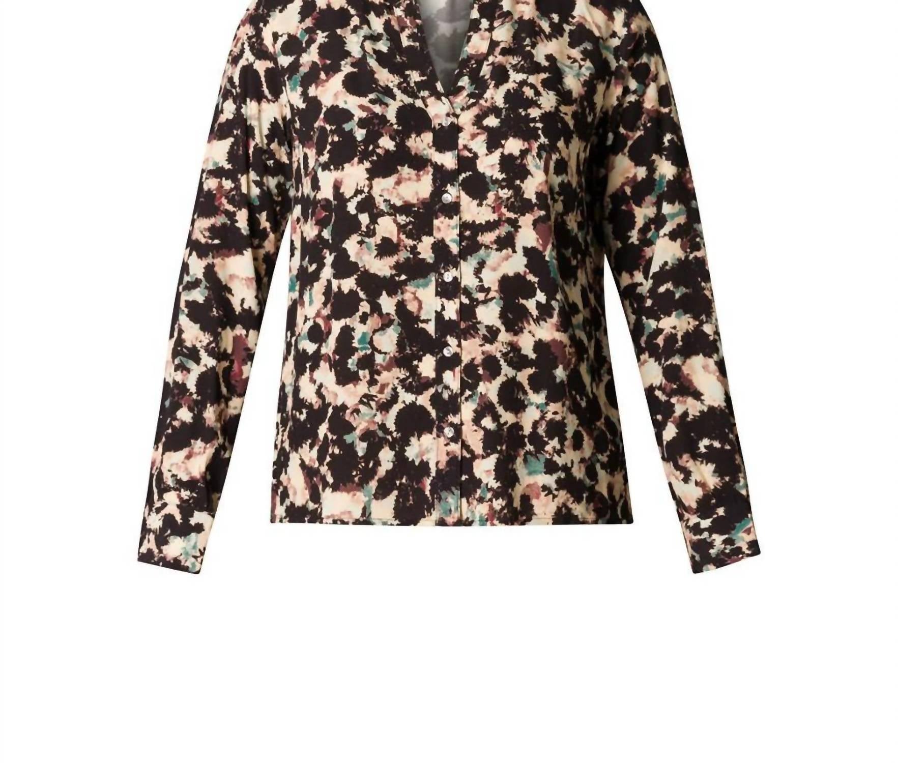 A timeless blouse that will never go out of style. Introducing the Olize Essential V-neck Shirt by Yest, a stylish addition to your summer wardrobe for a variety of occasions, including holiday parties. This multi-colored blouse showcases long sleeves and a classic V-neck design, tailored in 100% Viscose for a comfortable fit. Its patterned material offers a chic twist to traditional workwear and is accentuated with a practical button closure. To maintain its vibrant appearance, hand wash and line dry are recommended.