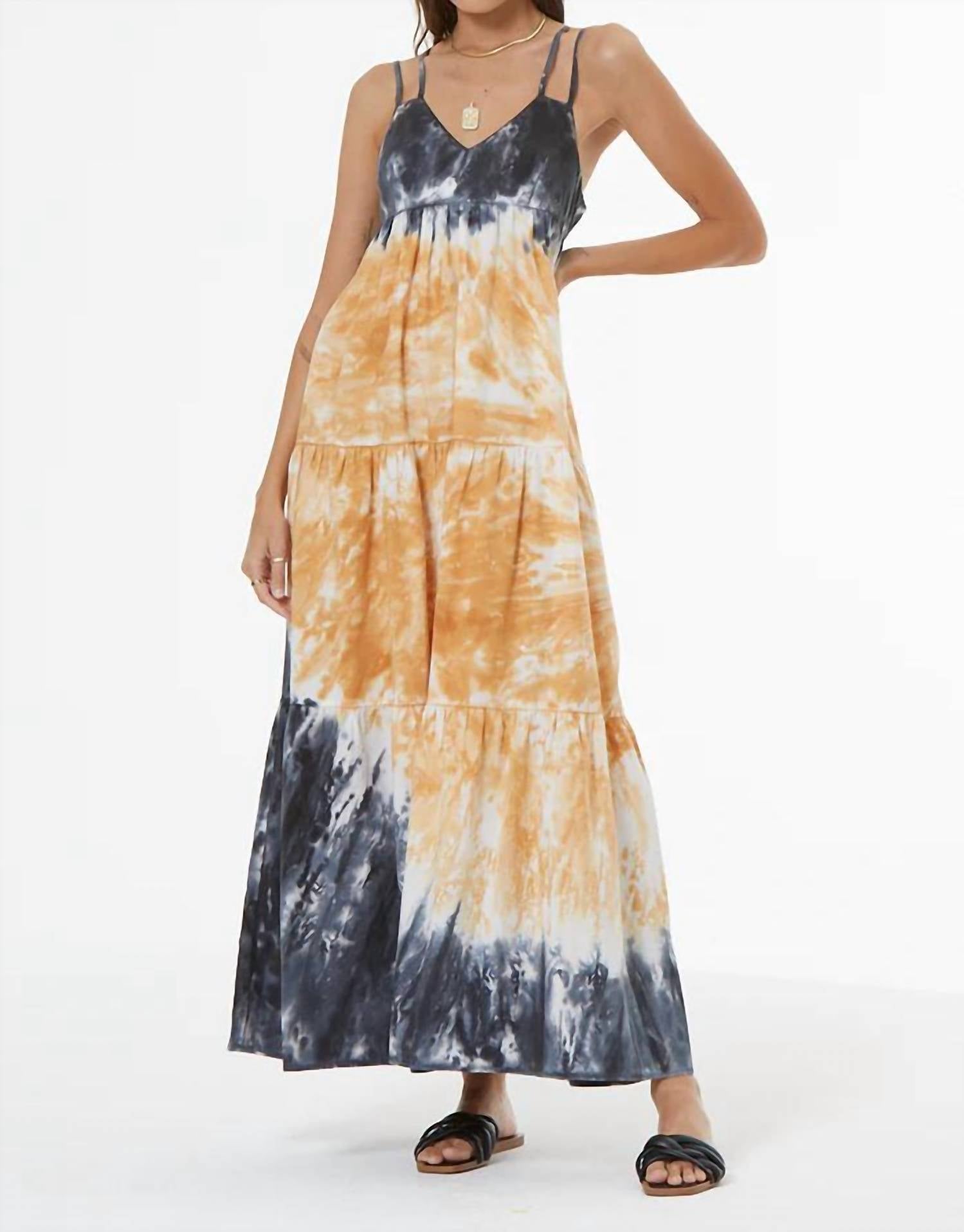 Style this maxi with your favorite statement necklace and sandals for the perfect look. Embrace summer vibes with the Patio Poplin Maxi Dress by Young Fabulous & Broke, a sleeveless beauty perfect for your next vacation. Crafted in a boho chic tie-dye pattern, this maxi-length dress features a trendy double strap V neckline and a shift silhouette. Designed for effortless style in a sunbaked spiral wash, its convenient pull-on closure ensures a relaxed fit. Perfect for any sun-soaked escape, this dress seamlessly combines comfort and style.