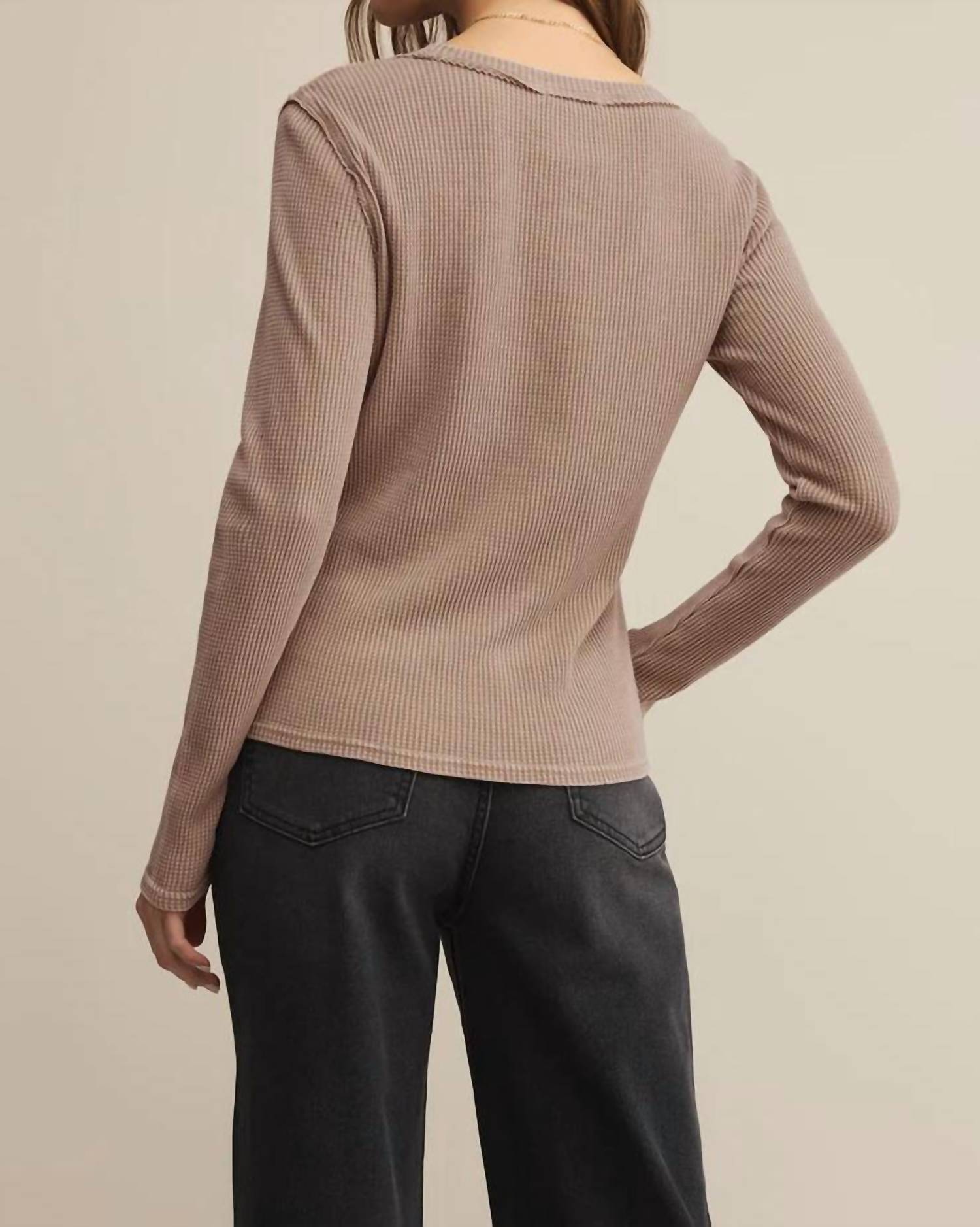 Great fit, cute design, soft fabric. You'll love everything about this long sleeve tee. Introducing the Arlet Mini Thermal Top by Z Supply, the ultimate minimalist essential for your spring wardrobe. This long sleeve top is crafted from a mini waffle thermal blend of 60% cotton and 40% polyester, offering both coziness and a lightweight feel. Designed with a crew neck and a fitted silhouette, it features a pull-on closure for ease. Care: Machine wash cold on a gentle cycle and hang to dry.