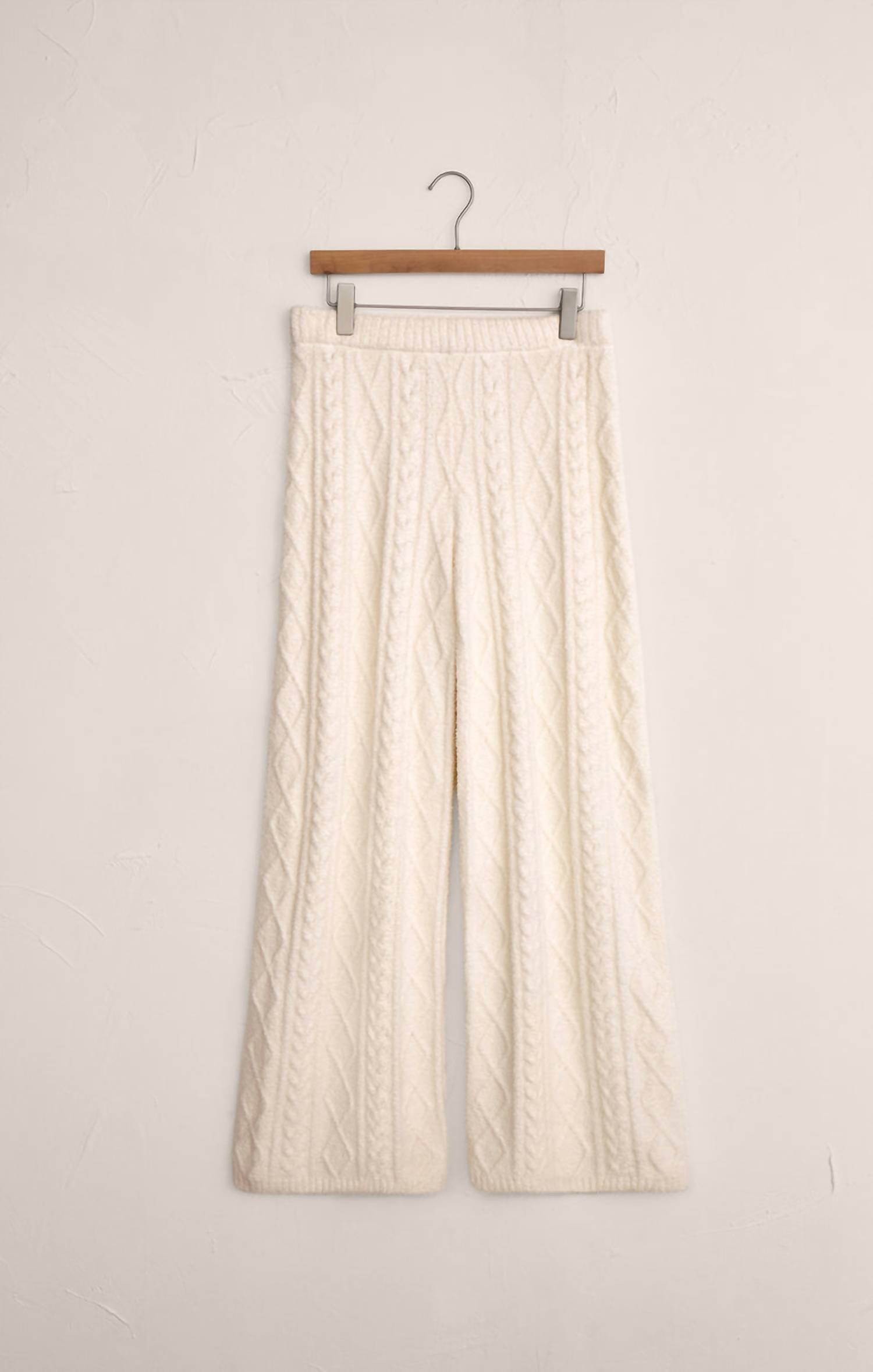 Elevate your cozy ensemble with the Gemma Cable Pants by Z Supply, a perfect blend of comfort and style in a soothing Vanilla Ice hue. These textured, full-length pants feature a wide-leg design and high rise for a vintage-inspired look, made from plush 100% polyester. The elastic waistband ensures a hassle-free pull-on fit, complemented by a heavy soft wash finish for ultimate comfort. Ideal for holiday parties, these 29.5" inseam pants are a versatile addition to your spring wardrobe.