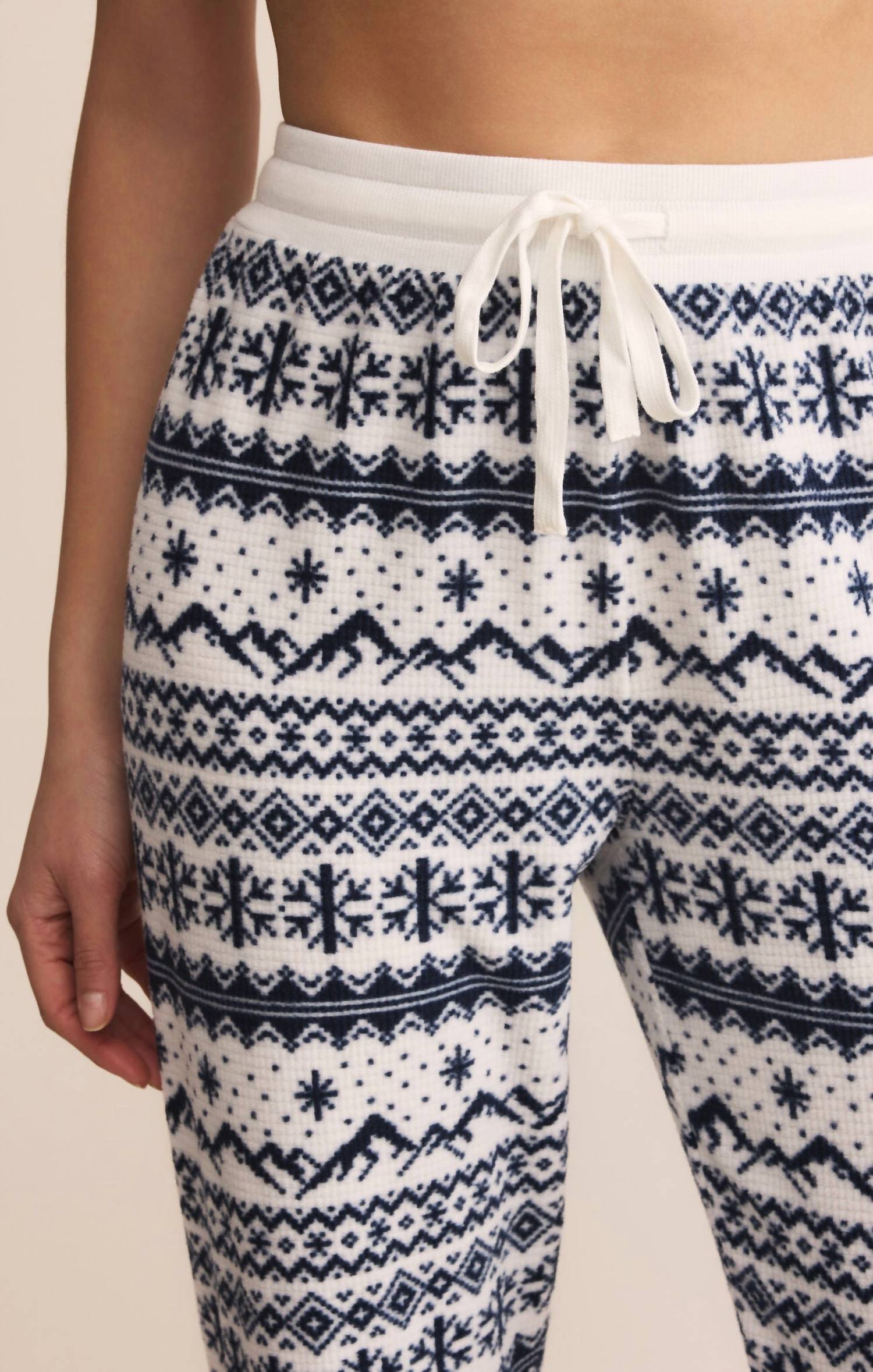 The perfect pant for running around town and looking cool while doing it. Discover the Luxe Twilight Fairisle Jogger by Z Supply, crafted in a luxurious vanilla ice velour waffle material with 95% Polyester and 5% Spandex for optimal comfort and style. These high-rise, ankle-length joggers feature a drawcord waistband and a relaxed fit, ensuring they are both lightweight and perfect for travel. The joggers have an inseam of 27.5 inches and a pull-on closure for easy wear. Care: Hand wash and line dry to maintain their soft, heavy-washed finish.