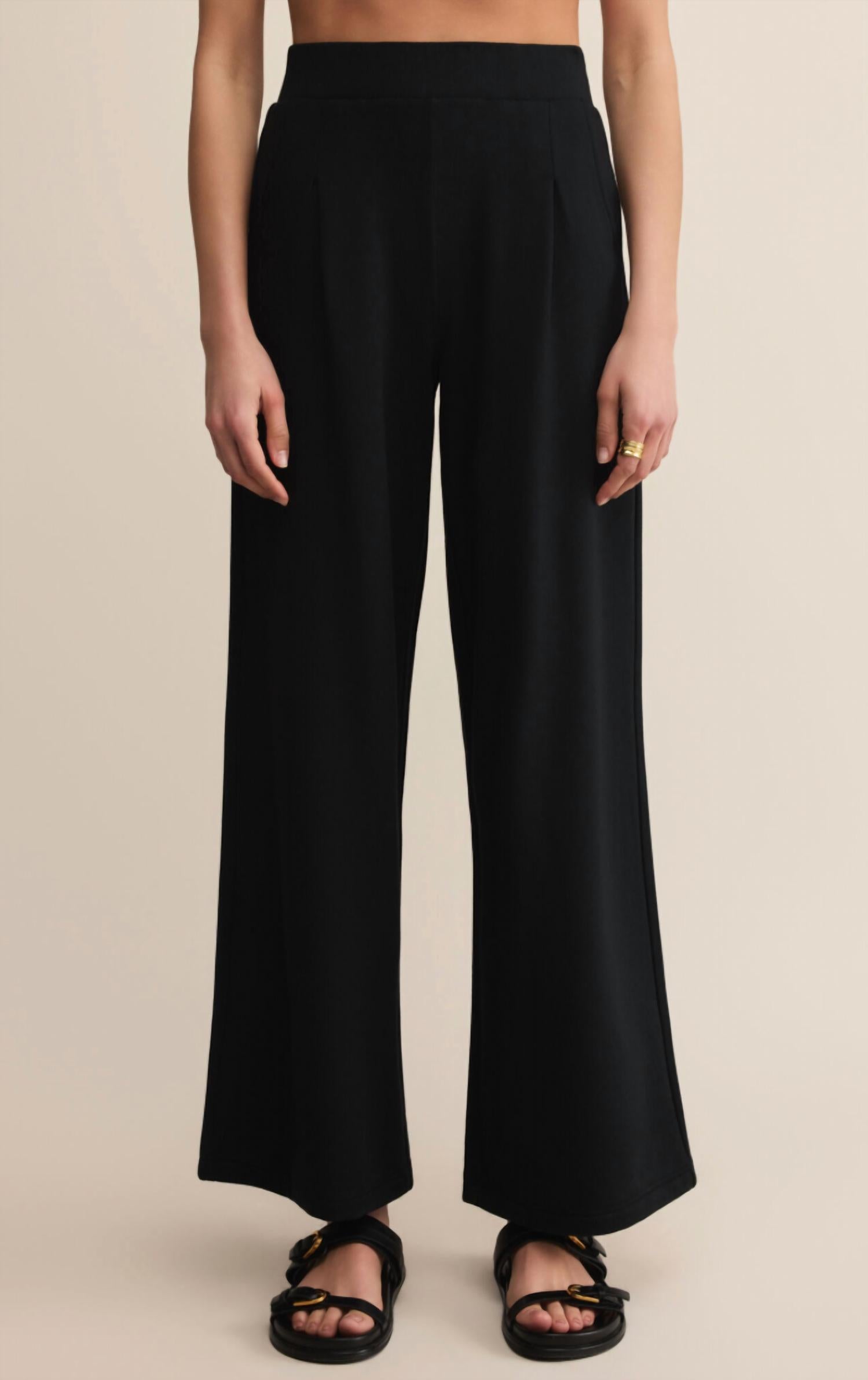 Elevate your casual wardrobe with the Z Supply Round Trip Track Pant in sleek black, designed for comfort and style. These women's track pants feature a relaxed fit with a straight leg silhouette, high-rise waist, and ankle-length cut, making them a versatile choice for lounging or errands. Crafted from 97% Modal and 3% Spandex modal fleece, they offer softness and durability. Featuring convenient slash pockets and a pull-on closure, these pants are easy to care for with a machine wash cold, gentle cycle, and should be laid flat to dry.