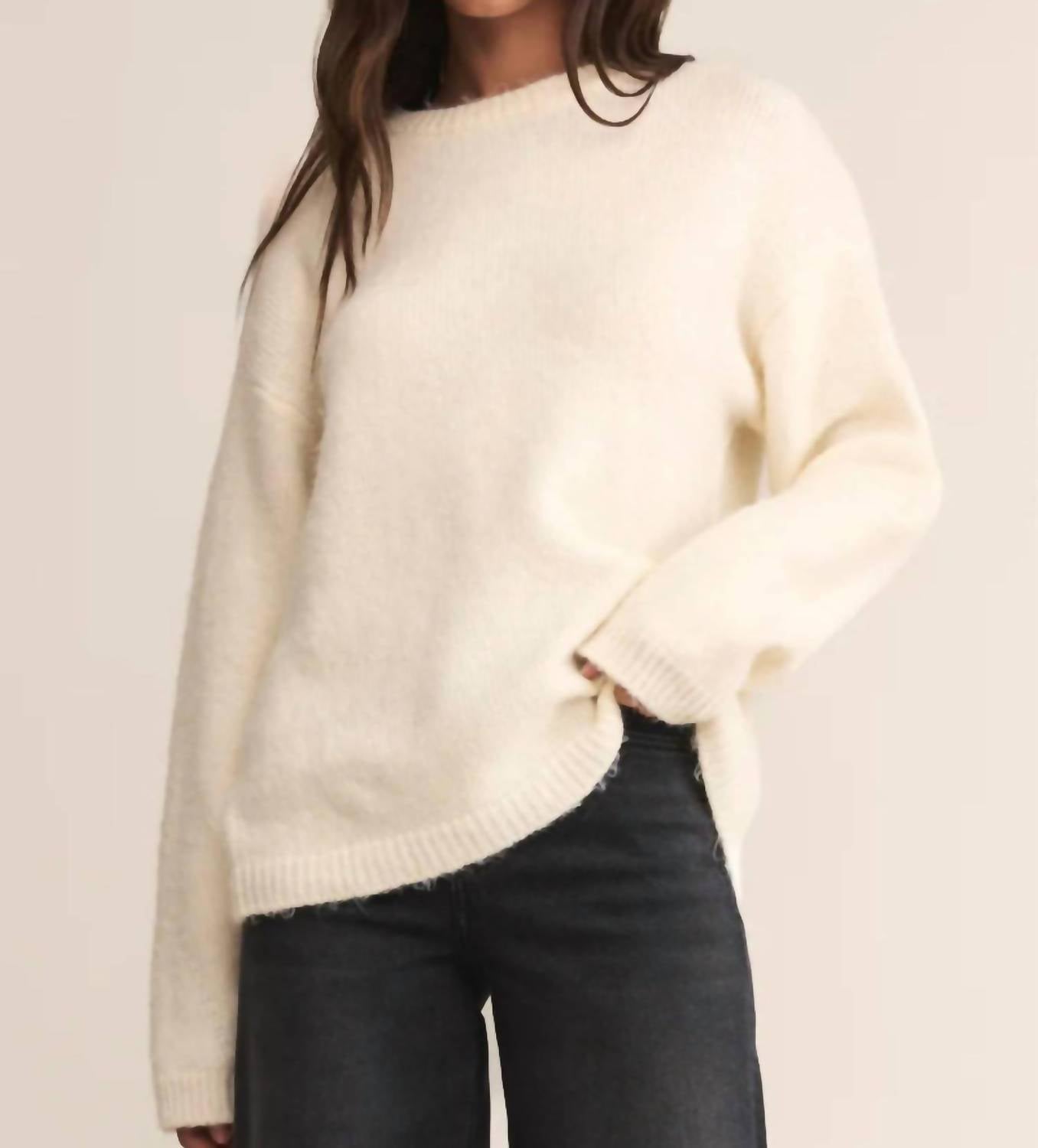 Stay warm and stylish in this versatile and effortlessly cool knitwear staple. Wear it alone or layered, it's the perfect sweater for the season and you'll wish you had it in every color. Embrace the cozy feel of the Snowed in Sweater by Z Supply, crafted for ultimate comfort. This oversized sweater features long sleeves and a classic crewneck, perfect for layering from casual days to stylish nights. Made from a soft blend of 55% acrylic, 30% polyester, and 15% nylon, this midweight knit showcases a warm white hue with a pull-on closure. Care instructions include machine wash and lay flat to dry.
