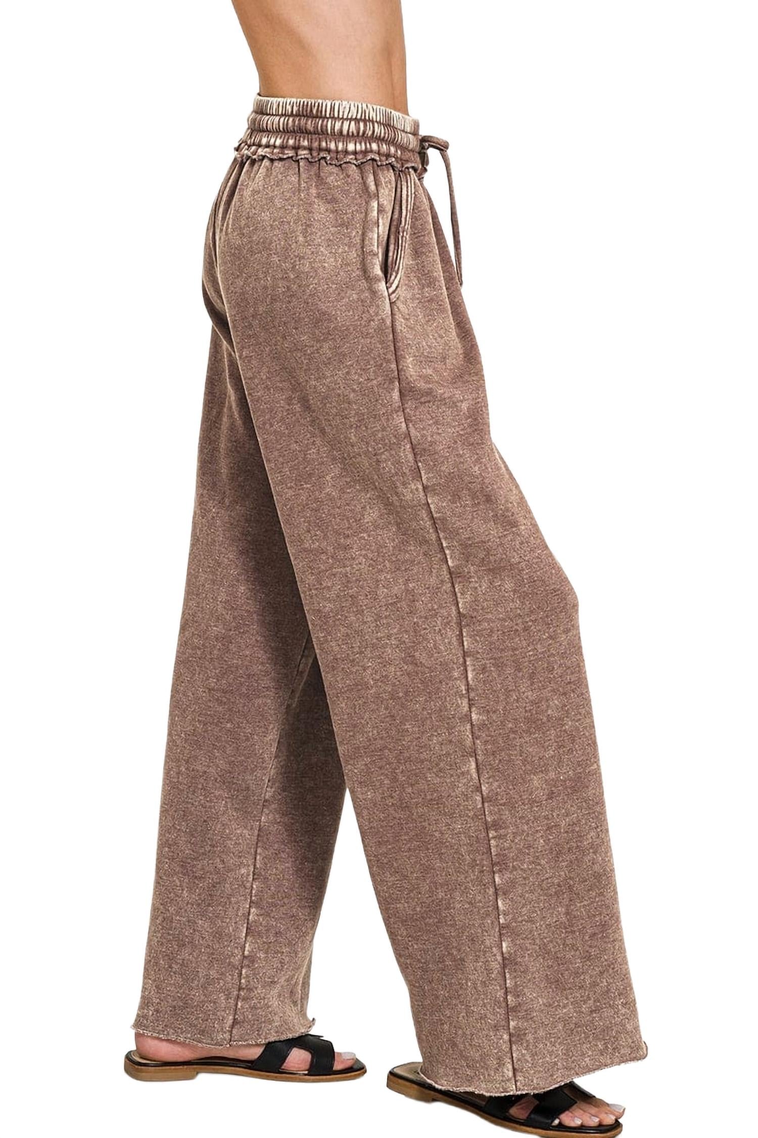 Zenana - Acid Wash Fleece Palazzo Sweatpants